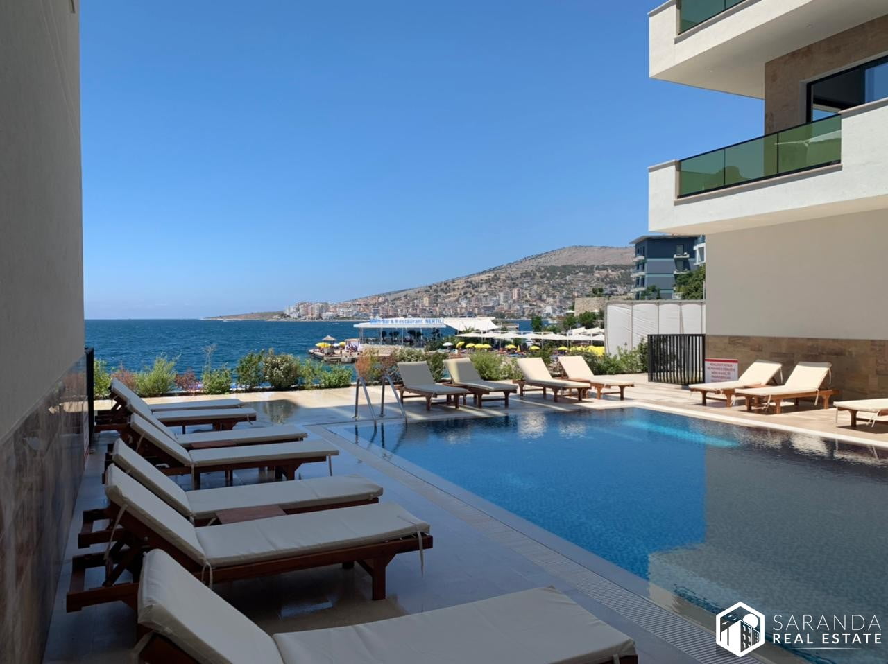 But the allure of this Albania Saranda real estate marvel doesn’t end within its four walls. Situated in a coveted residential enclave, every conceivable amenity is within arm’s reach. Be it a spontaneous shopping spree, a culinary adventure in the local eateries, or a leisurely evening stroll; everything is just a stone’s throw away. And for those moments when you crave solitude, the property’s pristine private beach and inviting pool stand ready to offer you a peaceful sanctuary.