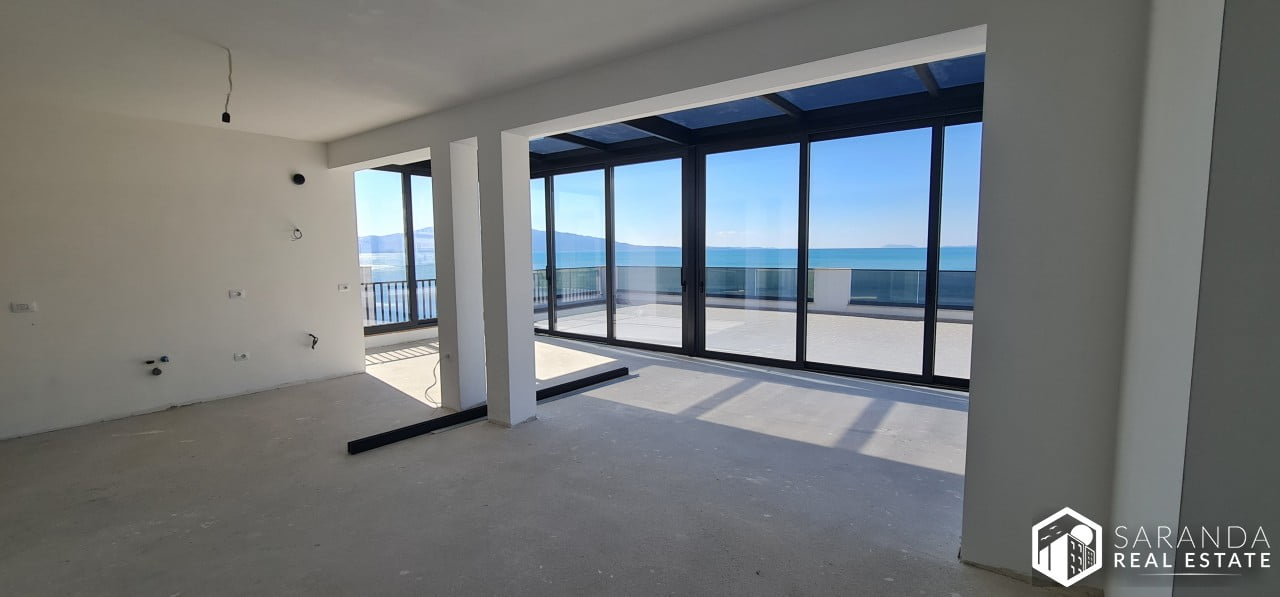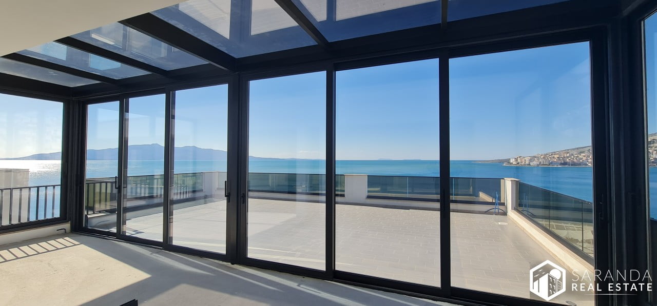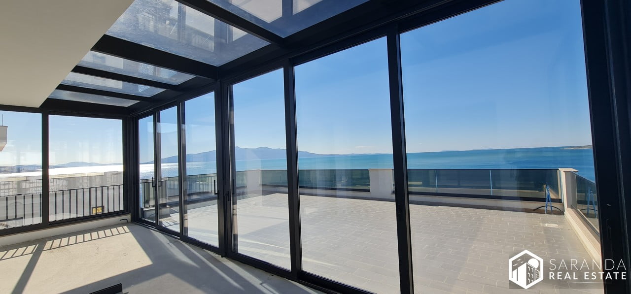 Experience luxurious Saranda Real Estate beachfront living at its finest with this stunning penthouse for sale in the exclusive “Golden Beach Residence”. This top-of-the-line penthouse boasts a breathtaking panoramic sea view, with a private beach and private pool, reserved exclusively for residents. Imagine waking up each day to the sound of the waves crashing against the shore, and taking a dip in your own private pool with stunning views of the sea right in front of you.